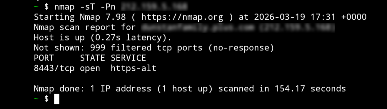 When I run nmap -sT -p- it shows port 20323/tcp as open with an unknown service. I have tried (and failed) to block access with a firewall rule.