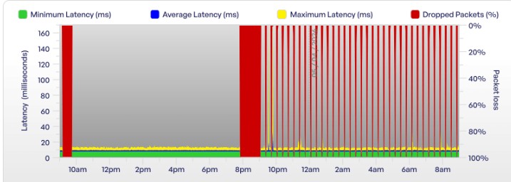 If I connect the Brsk supplied Technicolor router it is fine, see left hand side of graph. However as soon as I swapped to the 2927 the drops return, see right hand side.